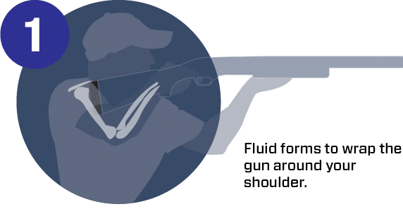 The hydraulic fluid works to match your body shape that contours the shoulder when the gun is fired. The gun wraps around you—you don’t wrap yourself around the gun.